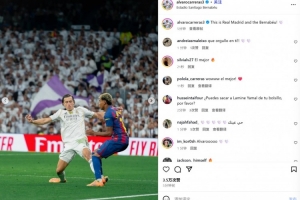 他也在赛后通过社媒晒出同亚马尔的对位照,并配文:“这就是皇家马德里和伯纳乌球场!”