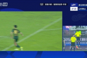 体育资讯10月18日讯 中超第27轮,浙江坐镇主场对阵山东泰山,主裁亲自回看VAR,没有判罚浙江球员禁区内手球犯规,目前比分仍为0-0
