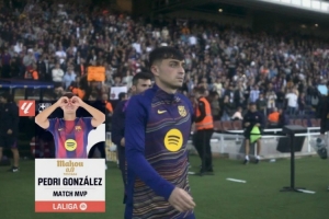 体育资讯10月19日讯 2025-26赛季西甲第9轮,巴萨2-1绝杀赫罗纳。佩德里首发出战,贡献1粒进球,赛后被评为全场最佳球员。