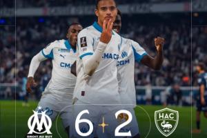 体育资讯10月19日讯 法甲第8轮,马赛6-2大胜勒阿弗尔,豪取法甲5连胜,登顶积分榜。