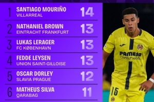 1.圣地亚哥-穆里尼奥(比利亚雷亚尔):14